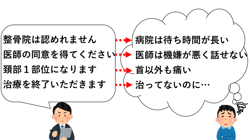 相手の保険会社に治療費を出してもらっていることで、治療期間を制限されてしまったり、適切な治療が受けることができにくなどの制限が出てきてしまいます。